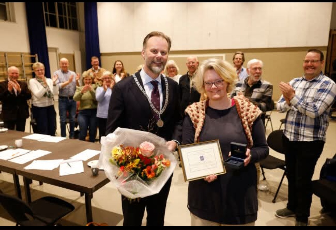 Met een mooie bos bloemen, een speld en een oorkonde hebben we haar bedankt voor al die jaren inzet. We hopen dat we nog lang van haar muzikaliteit en betrokkenheid mogen genieten.